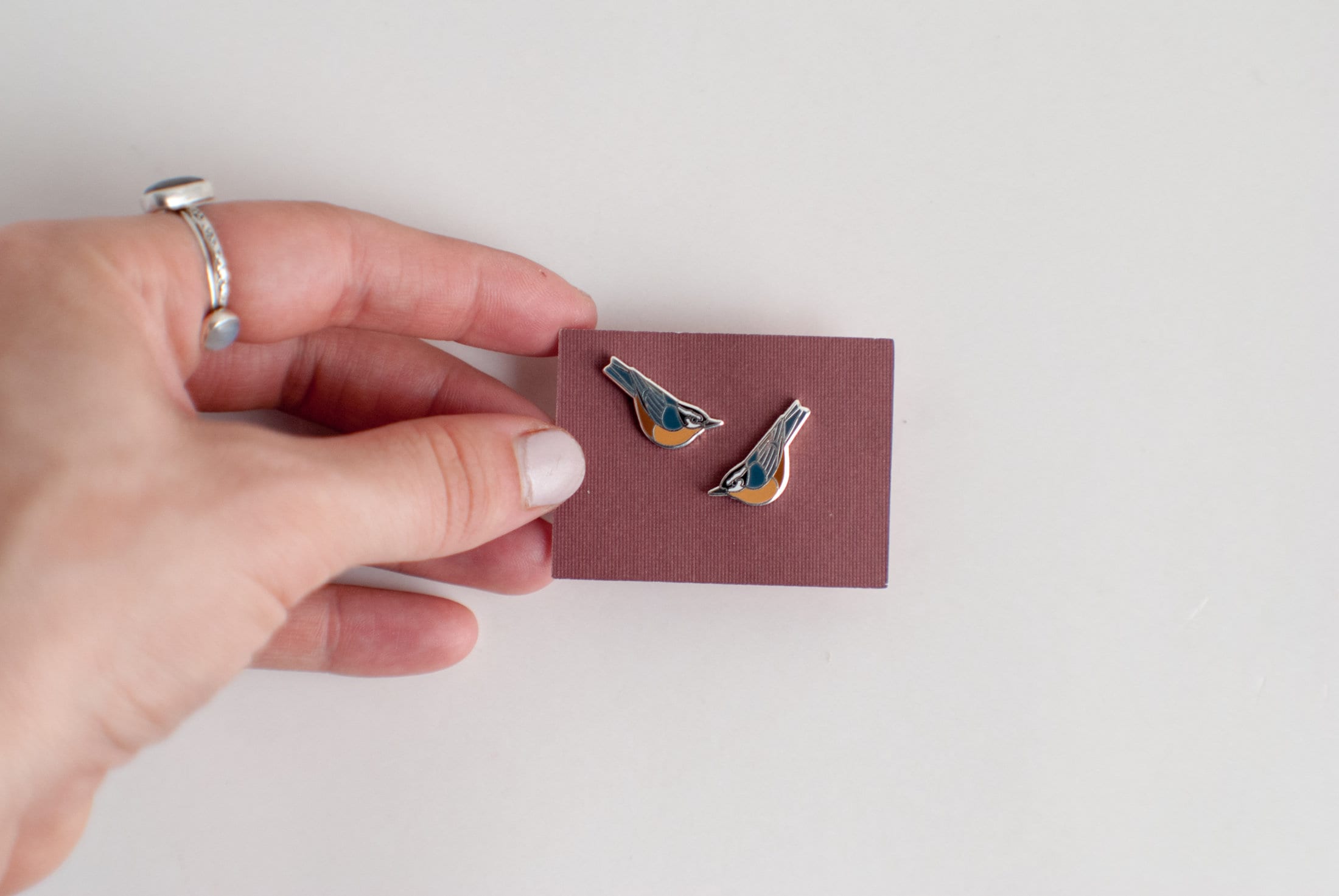 Enamel nuthatch charm is made of zinc alloy with a silver plating and hard enamel. Charm measures approx .75" across.