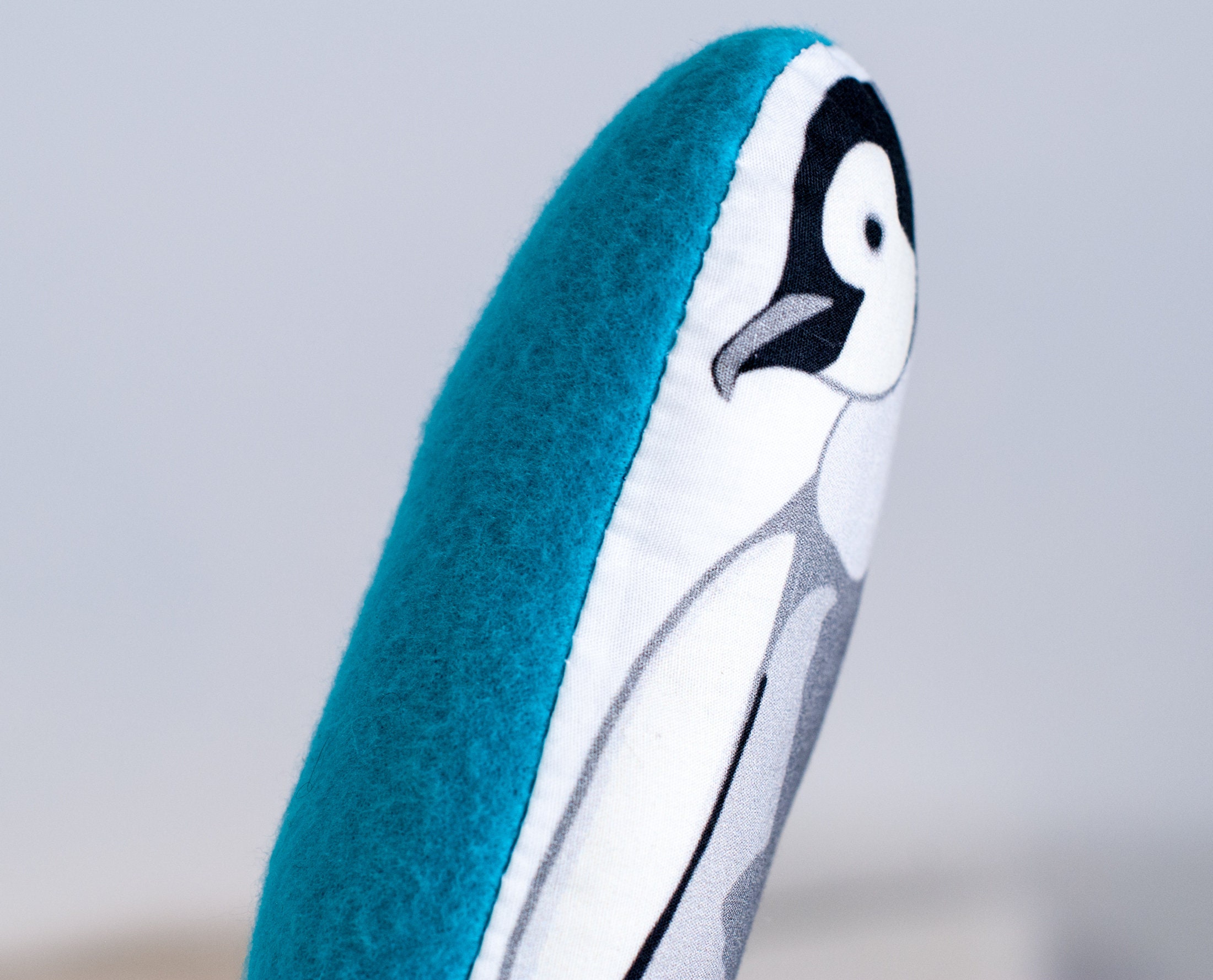 Baby penguin pillow is made of combed cotton and features my original illustration. This little guy is so cute and really becomes a conversation piece as he nestles in between a scattering of your favorite throw pillows. I have placed him next to one of my favorite (handmade and vintage) pillows to demonstrate how striking he really is