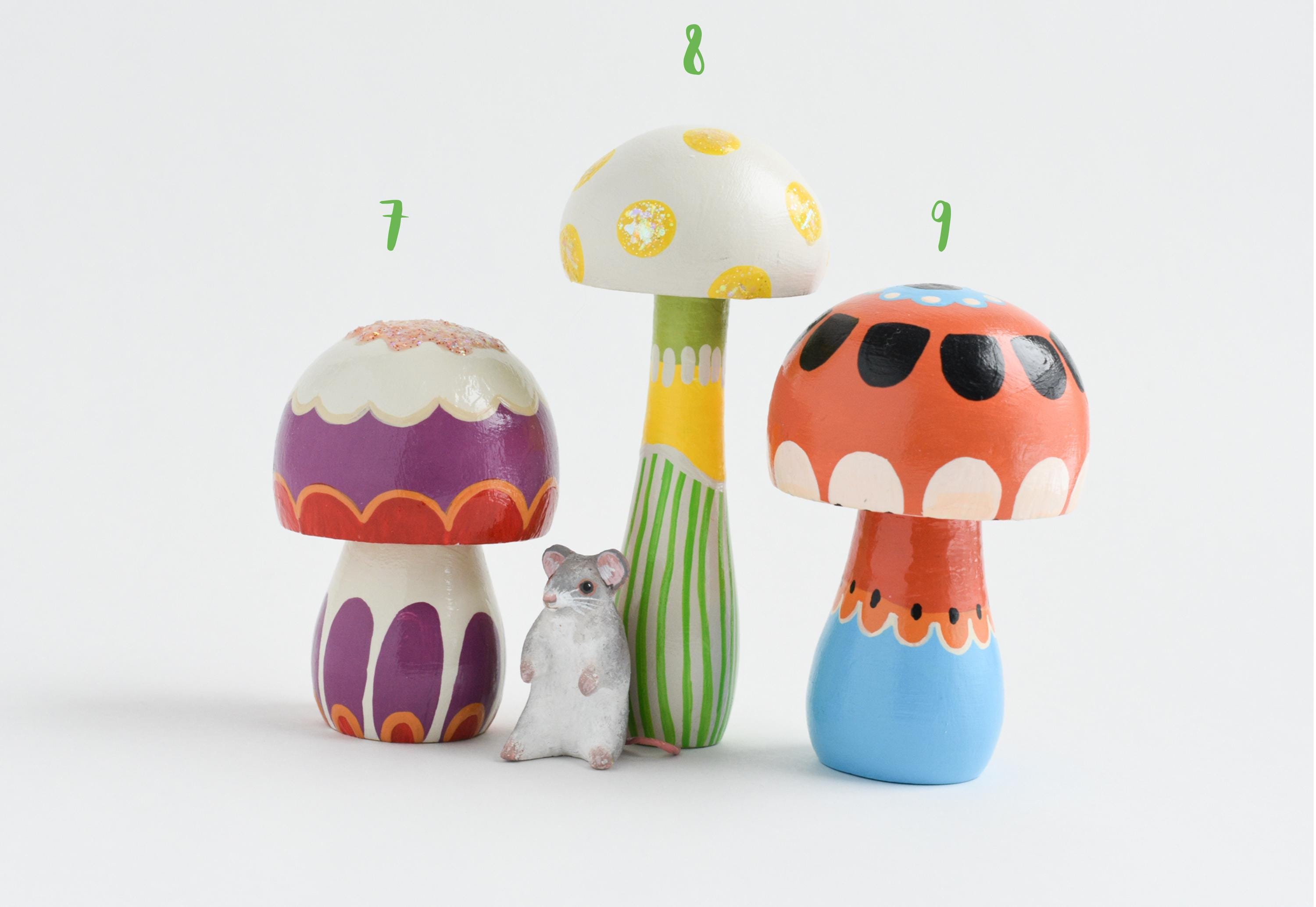 There are 12 mushroom designs to choose from — each one uniquely painted with forest-inspired colors, patterns, and finishes.