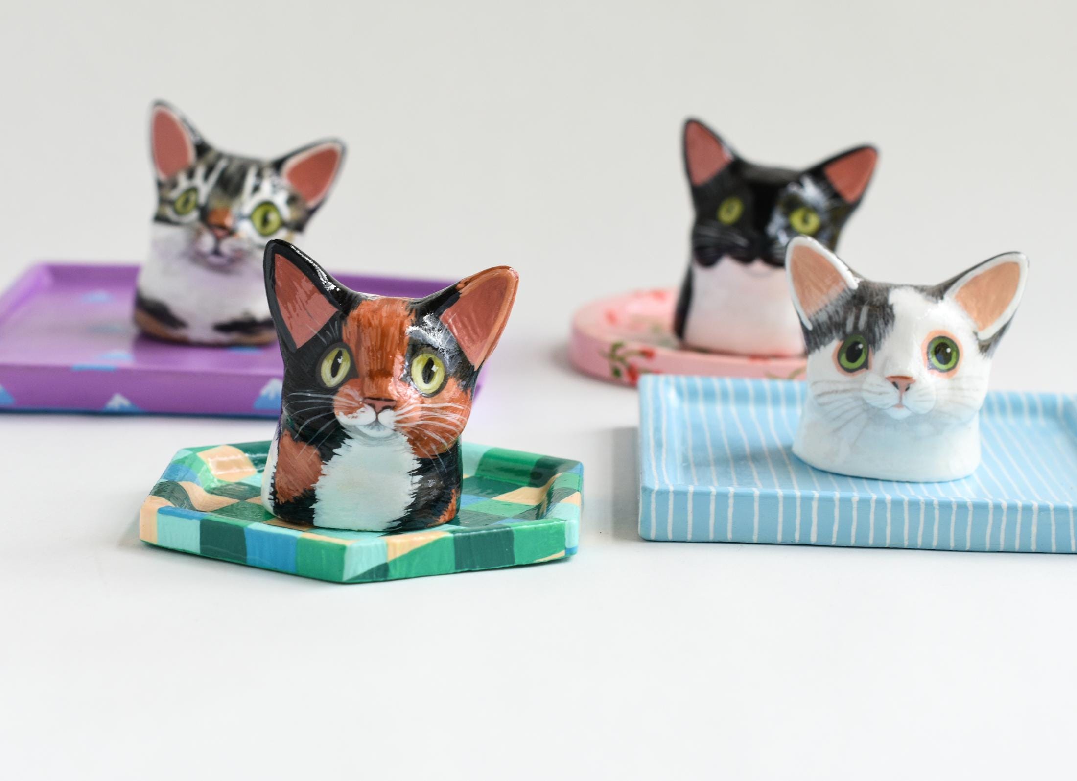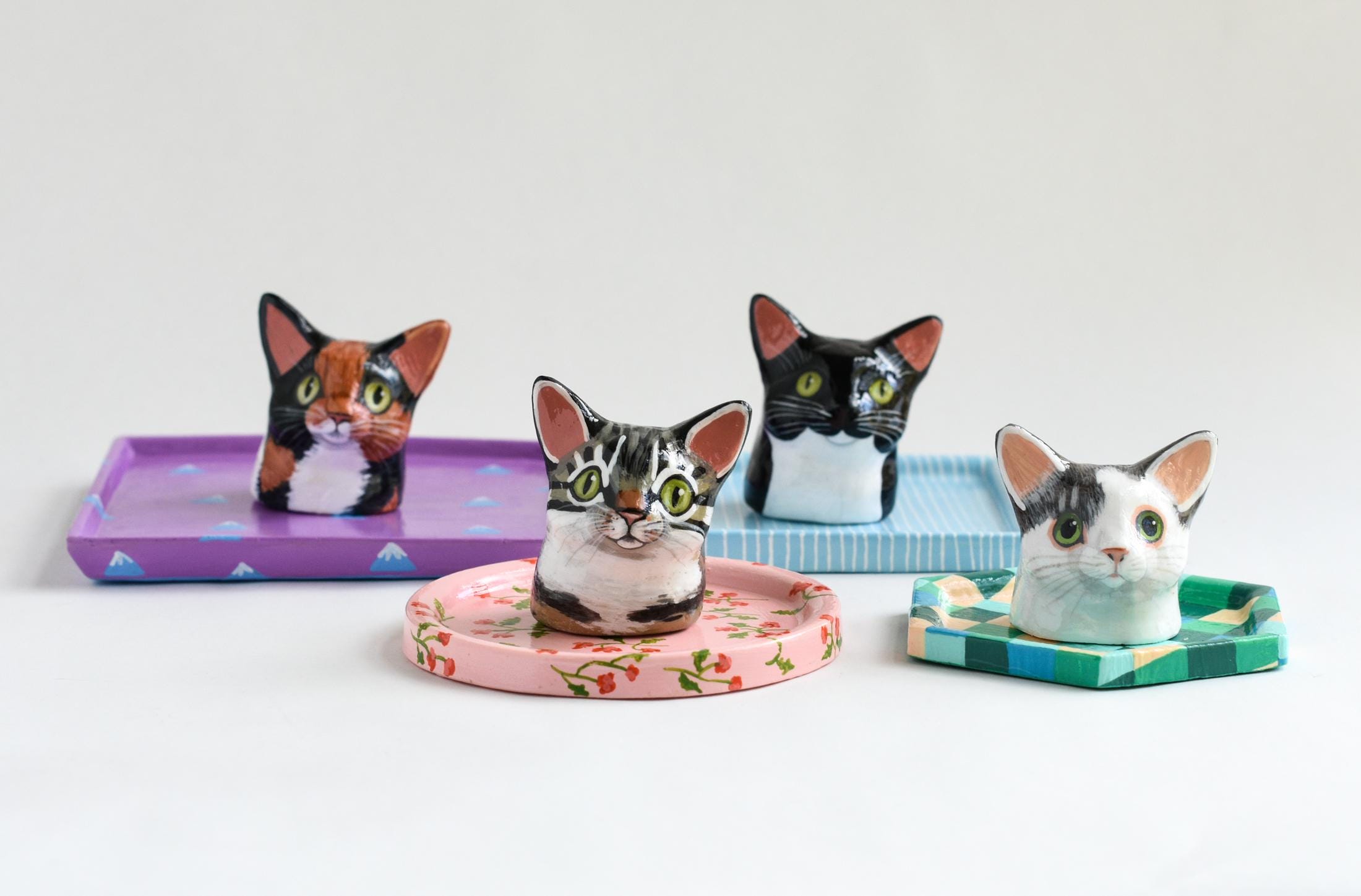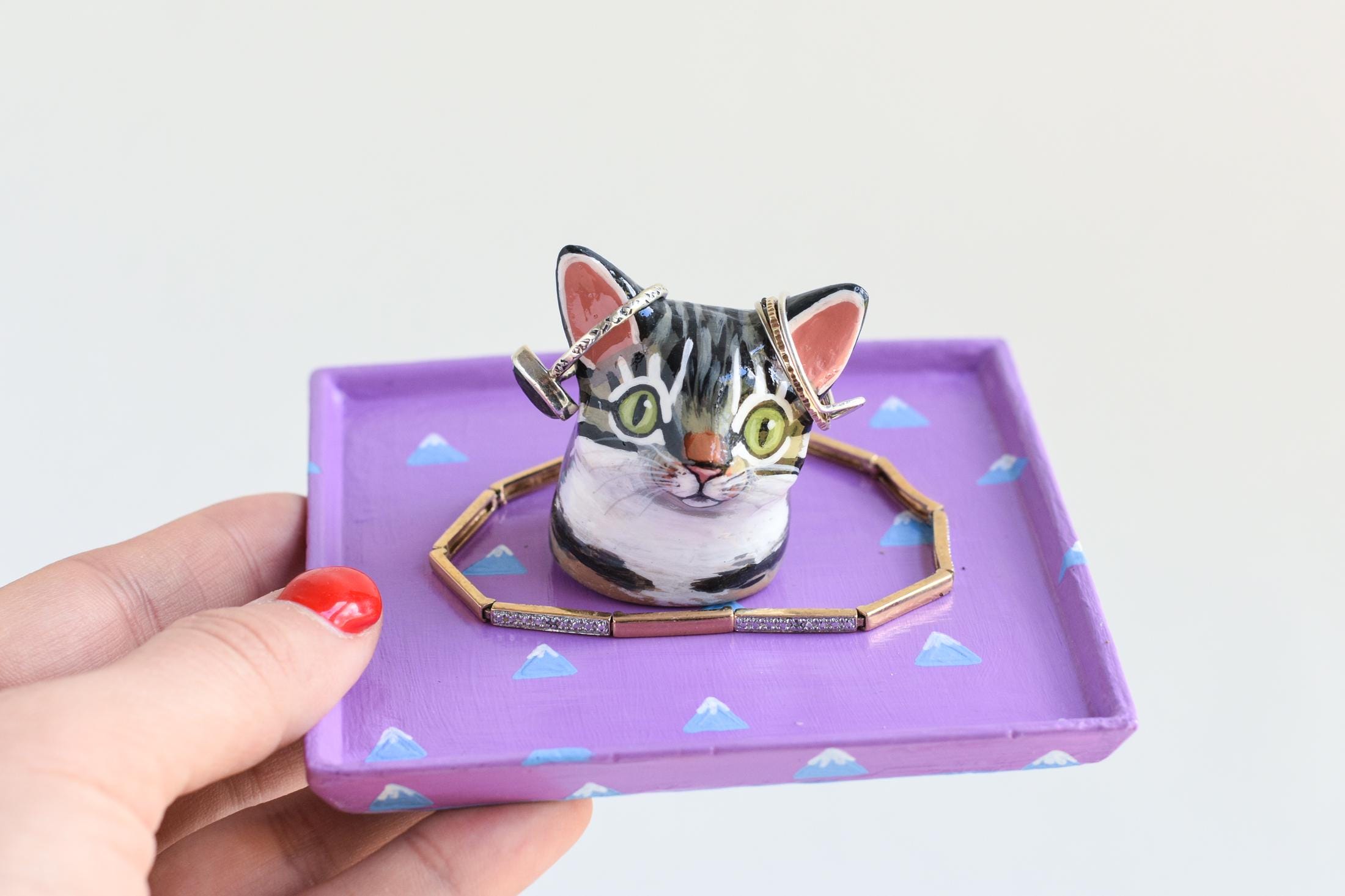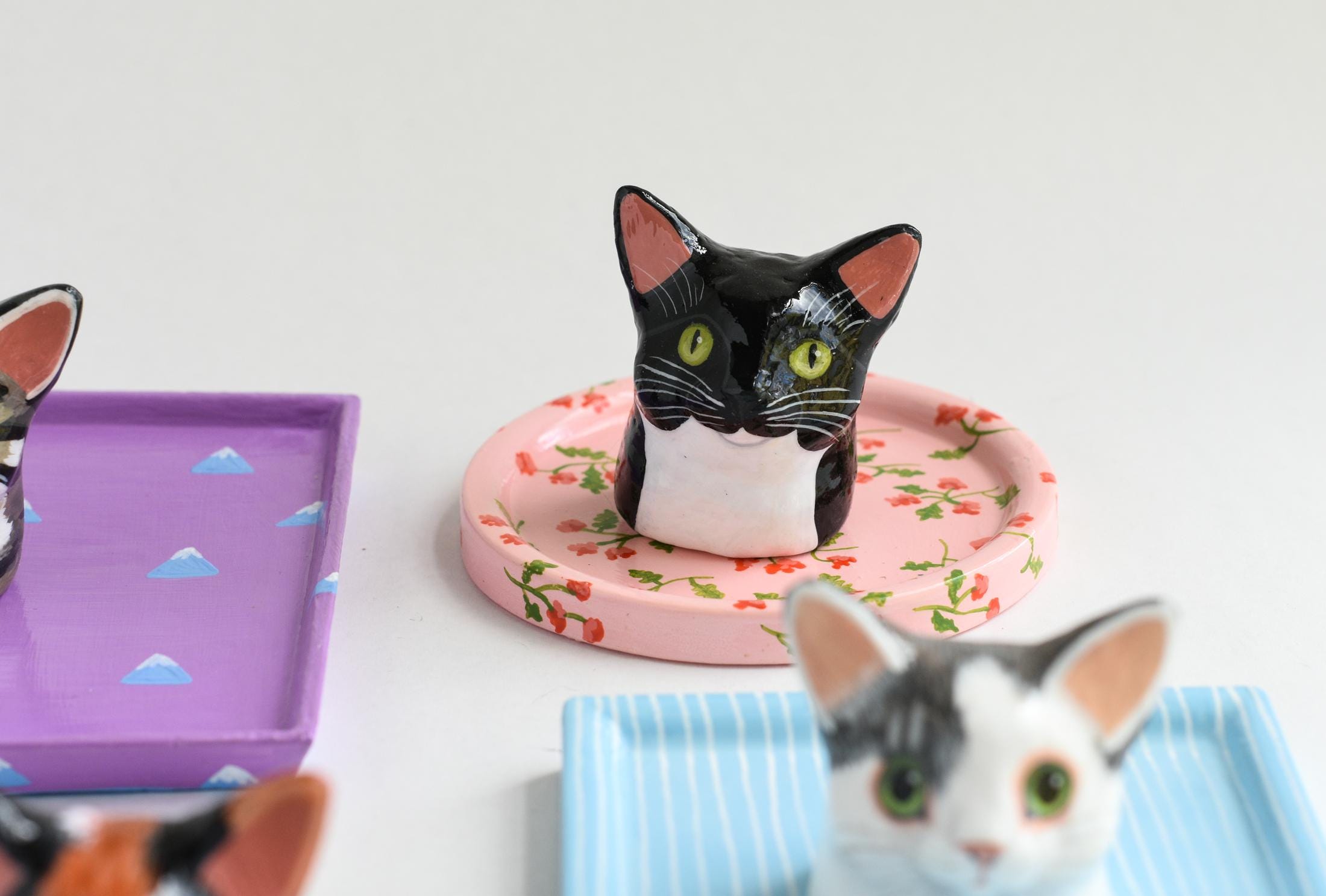 Celebrate your favorite feline with a one-of-a-kind, hand-sculpted cat jewelry dish! Each dish begins as an original sculpture that I designed and molded myself, then individually cast, painted, and glazed by hand — making every piece a true miniature work of art.
