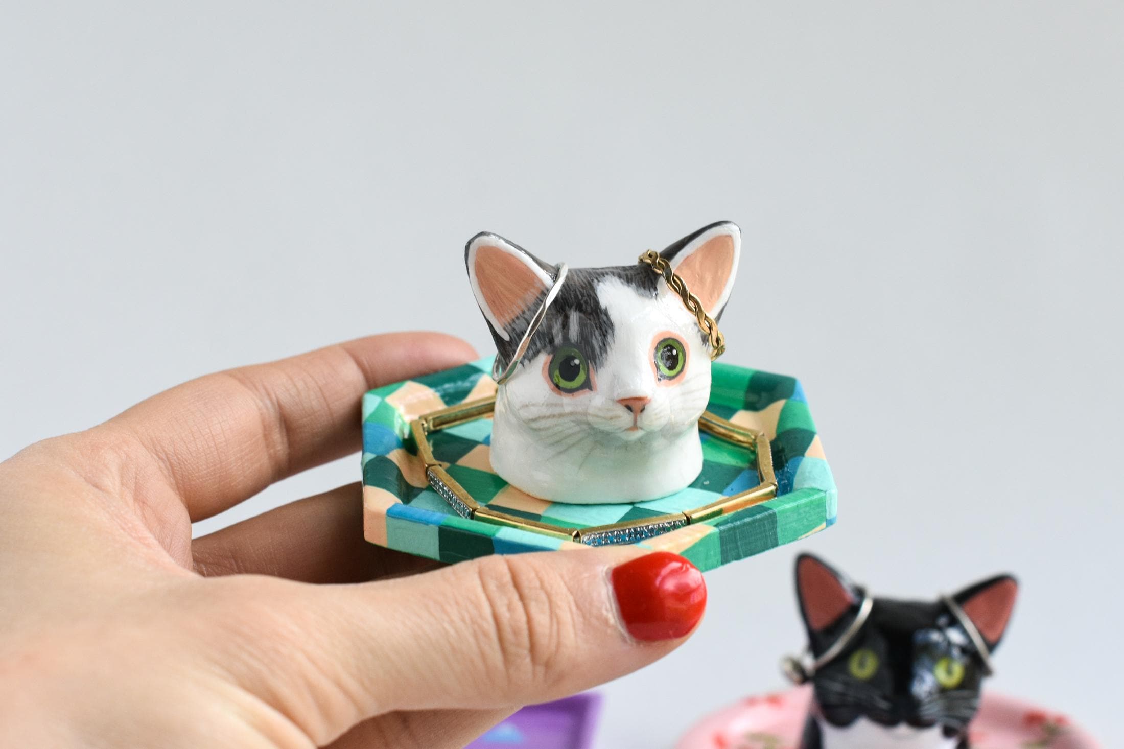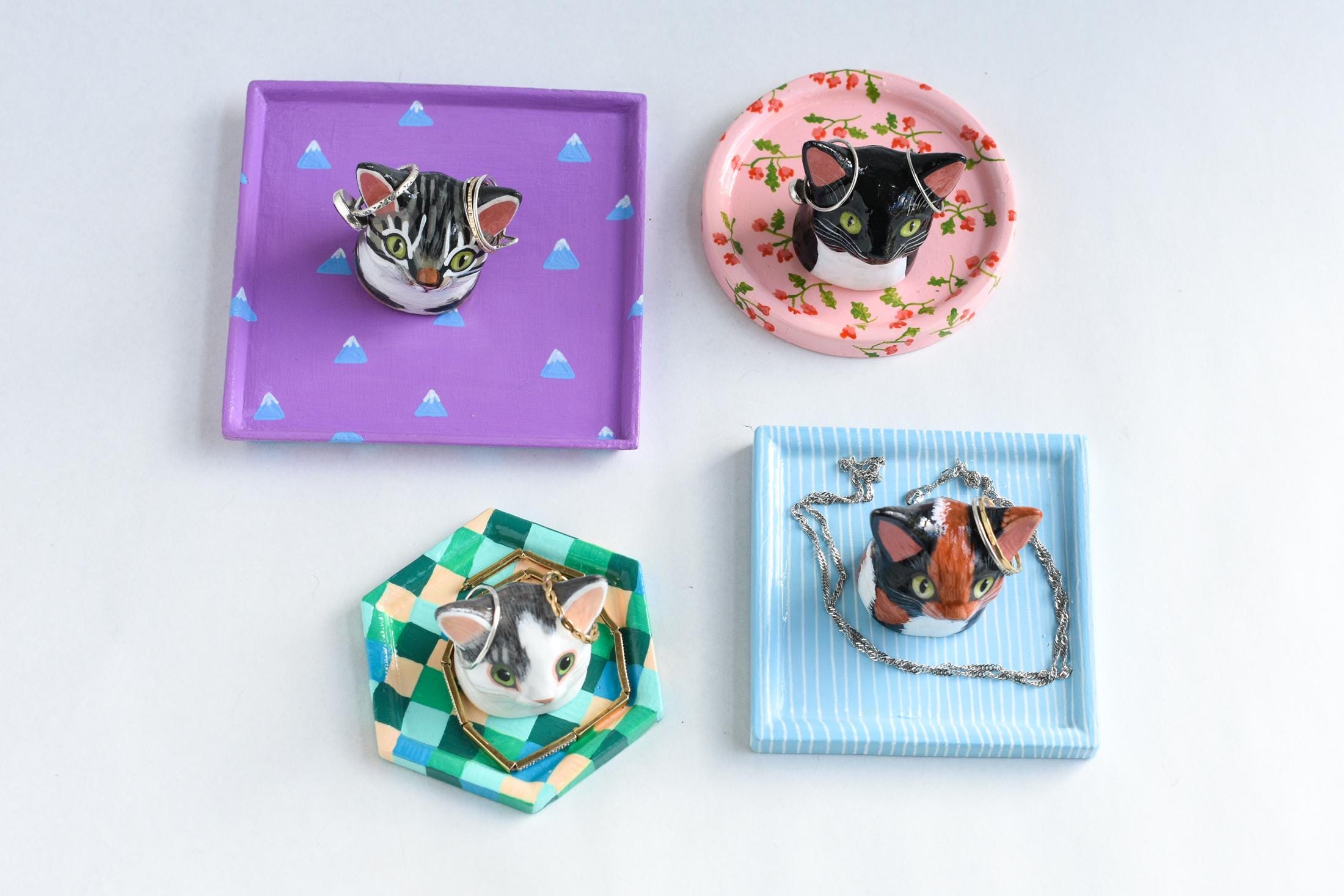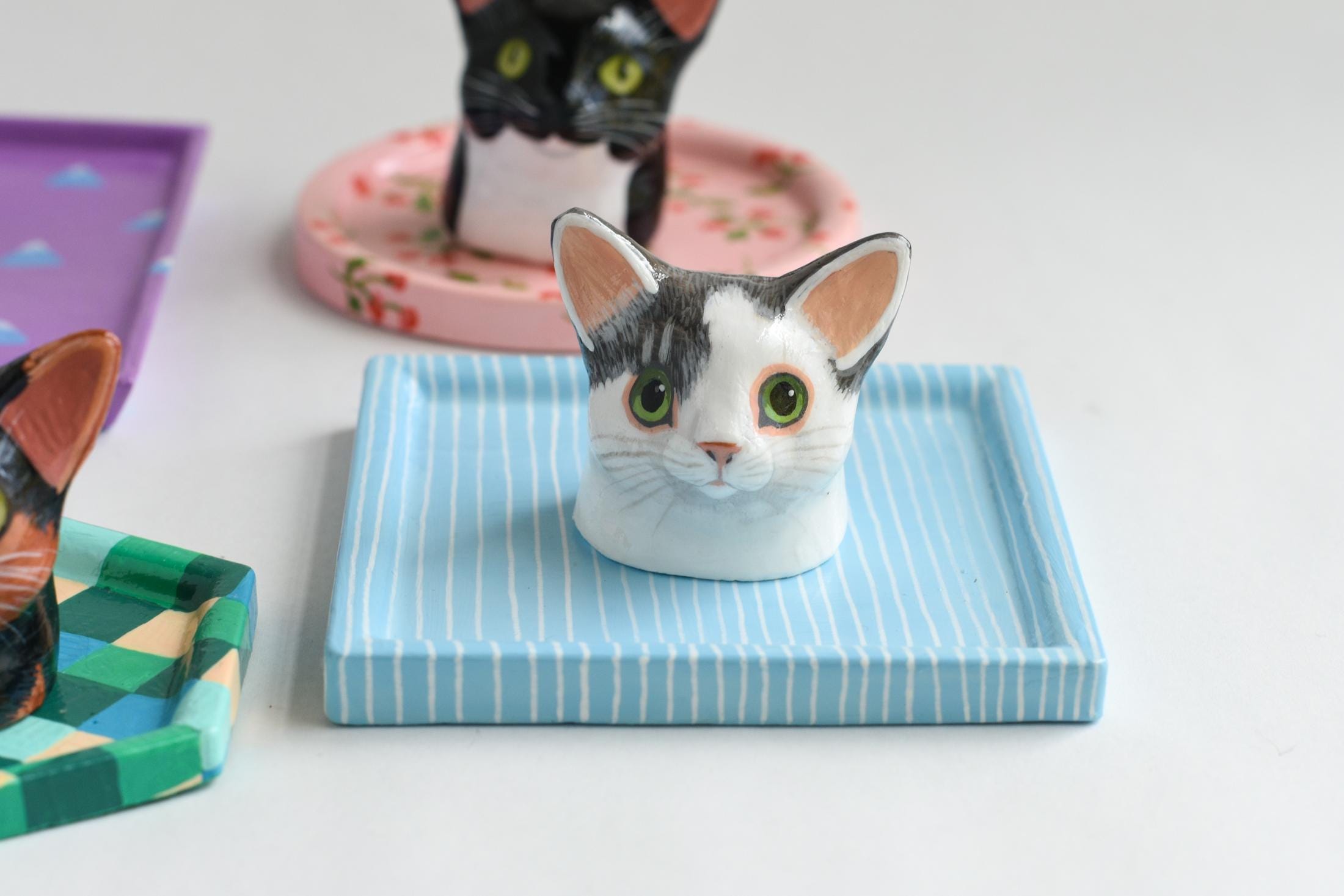 Celebrate your favorite feline with a one-of-a-kind, hand-sculpted cat jewelry dish! Each dish begins as an original sculpture that I designed and molded myself, then individually cast, painted, and glazed by hand — making every piece a true miniature work of art.