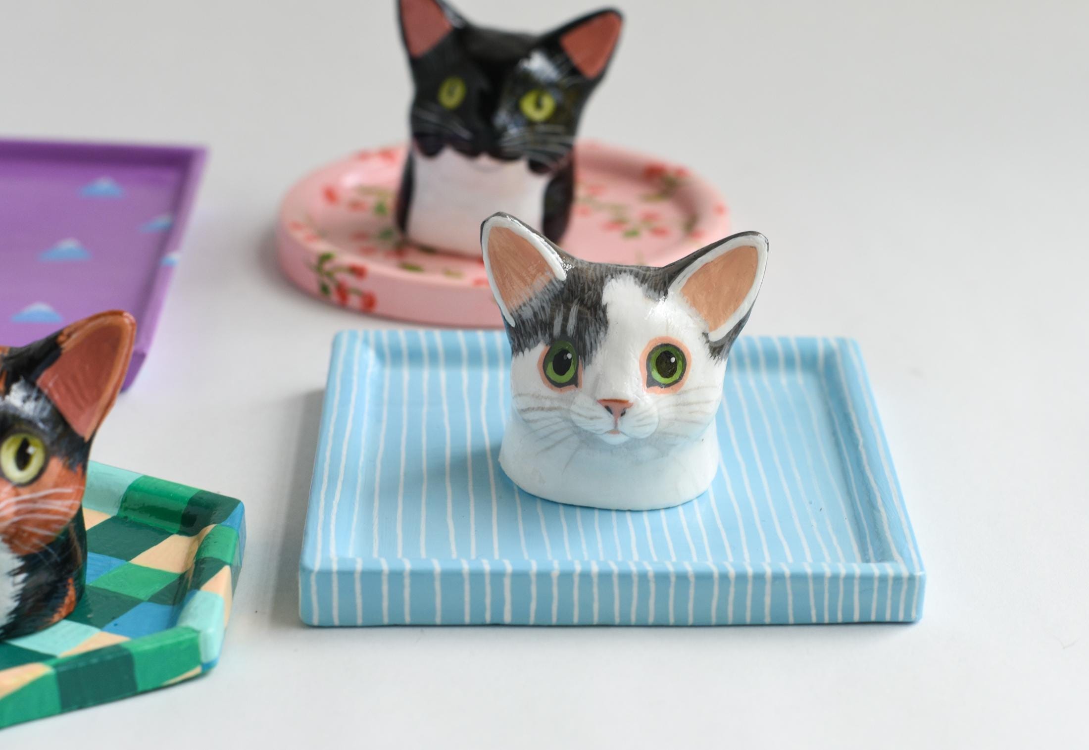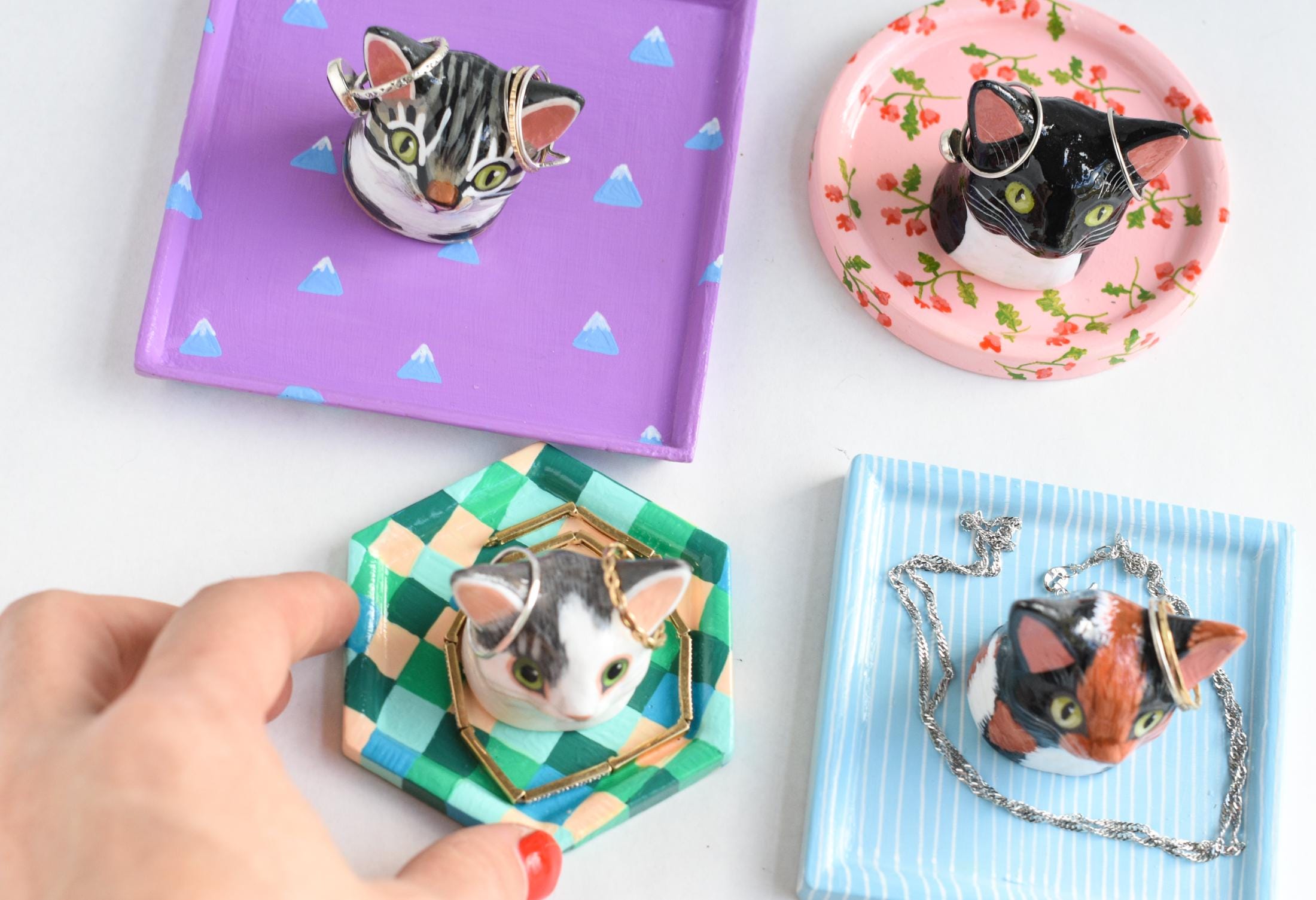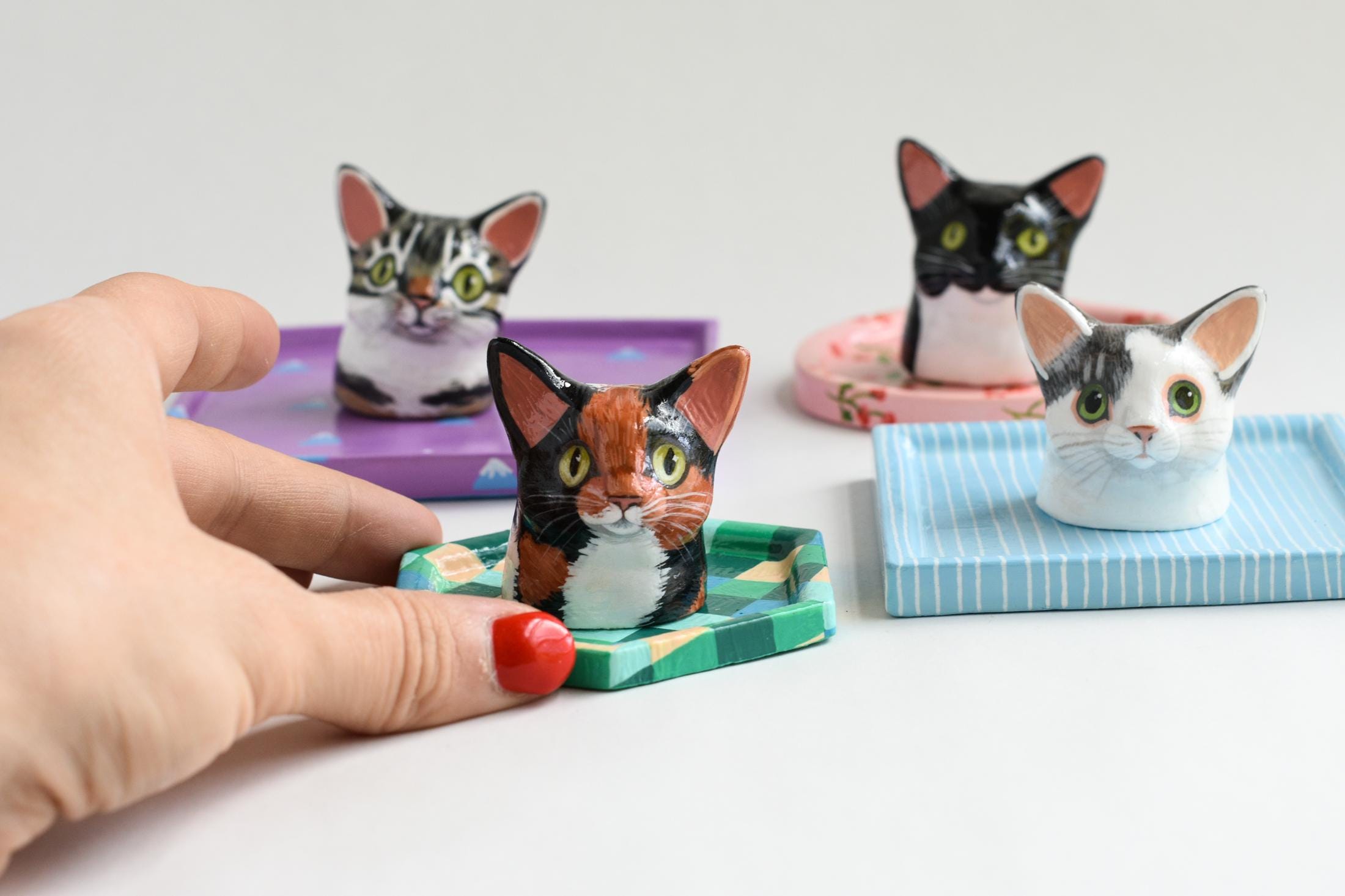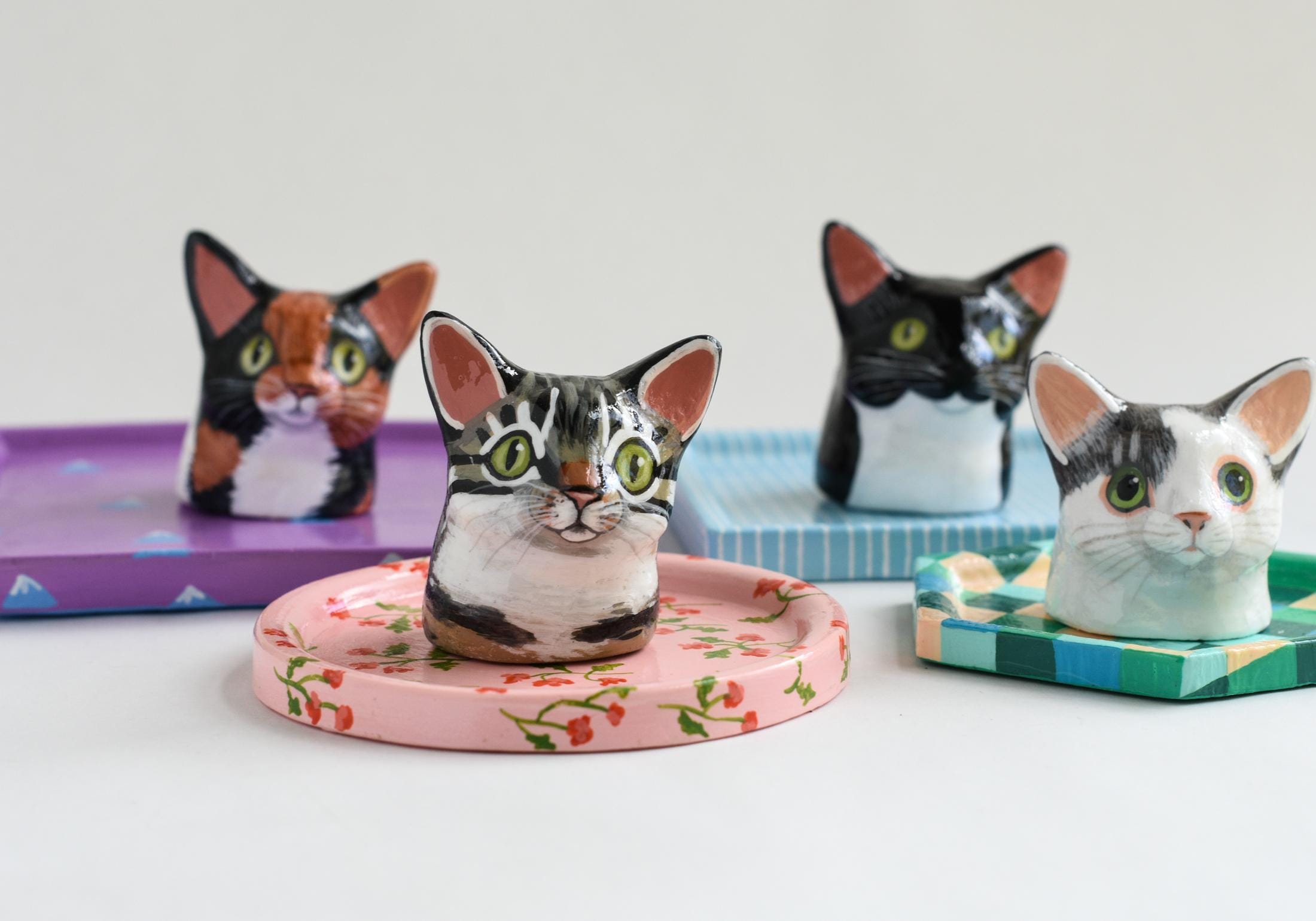 Celebrate your favorite feline with a one-of-a-kind, hand-sculpted cat jewelry dish! Each dish begins as an original sculpture that I designed and molded myself, then individually cast, painted, and glazed by hand — making every piece a true miniature work of art.
