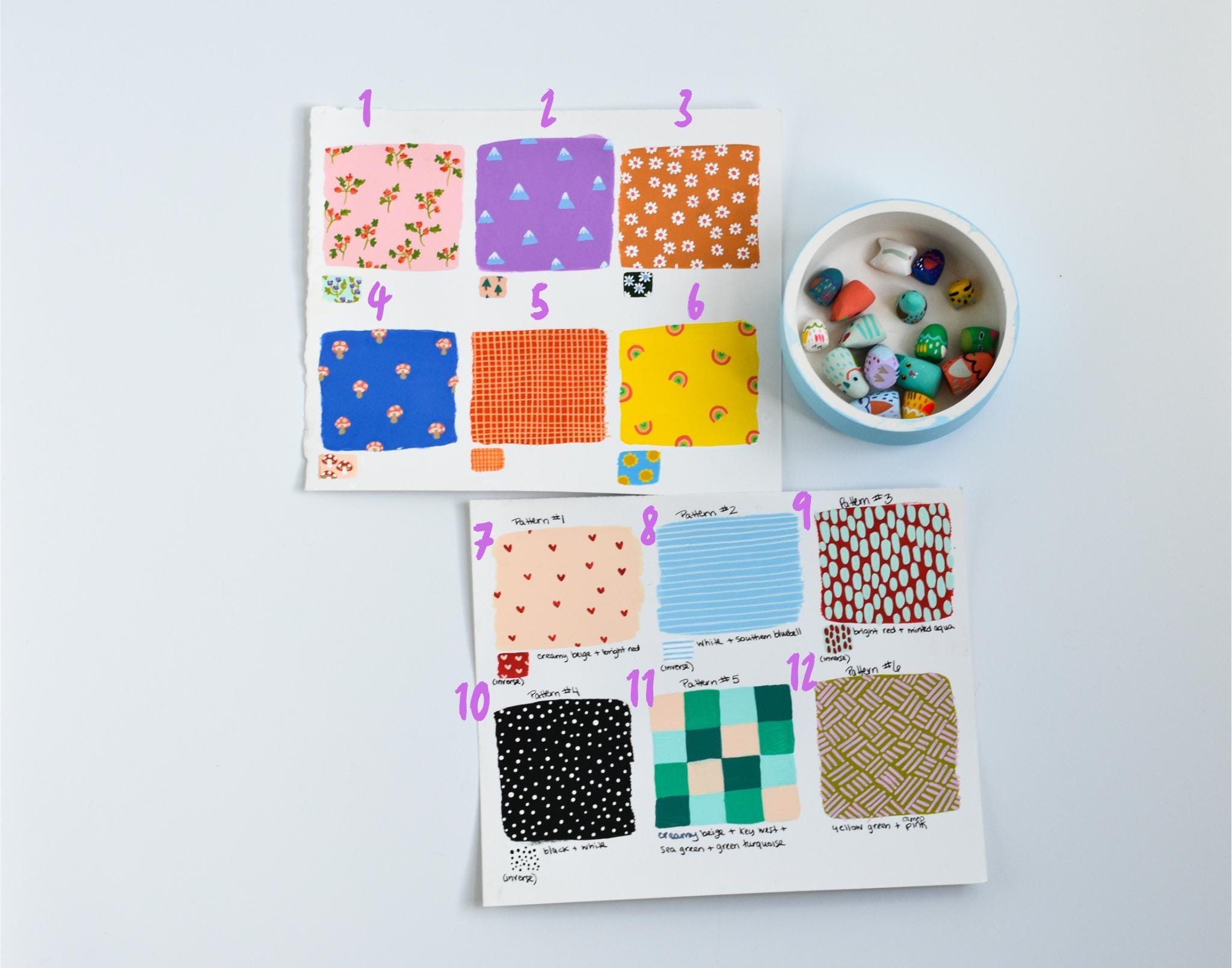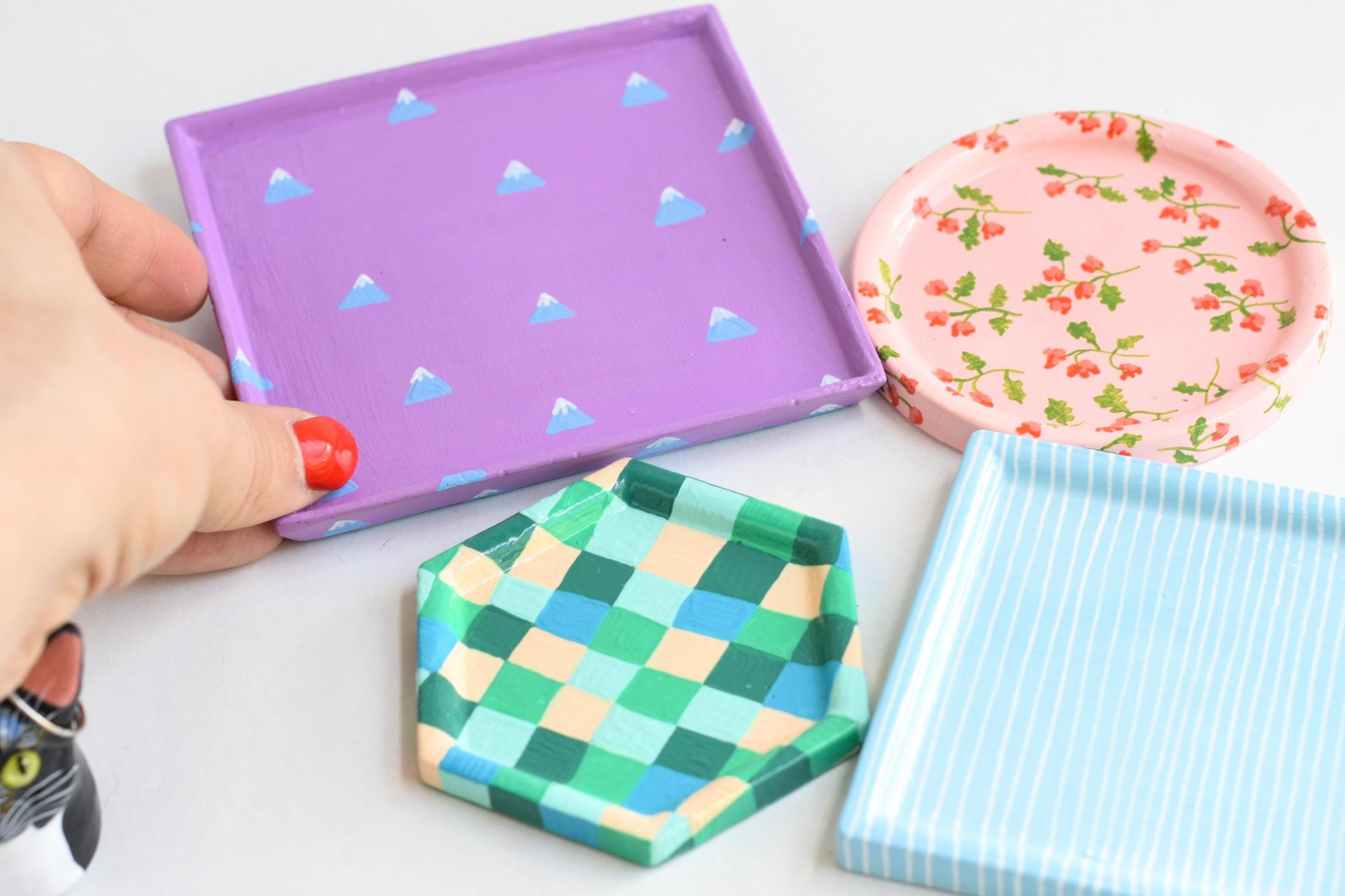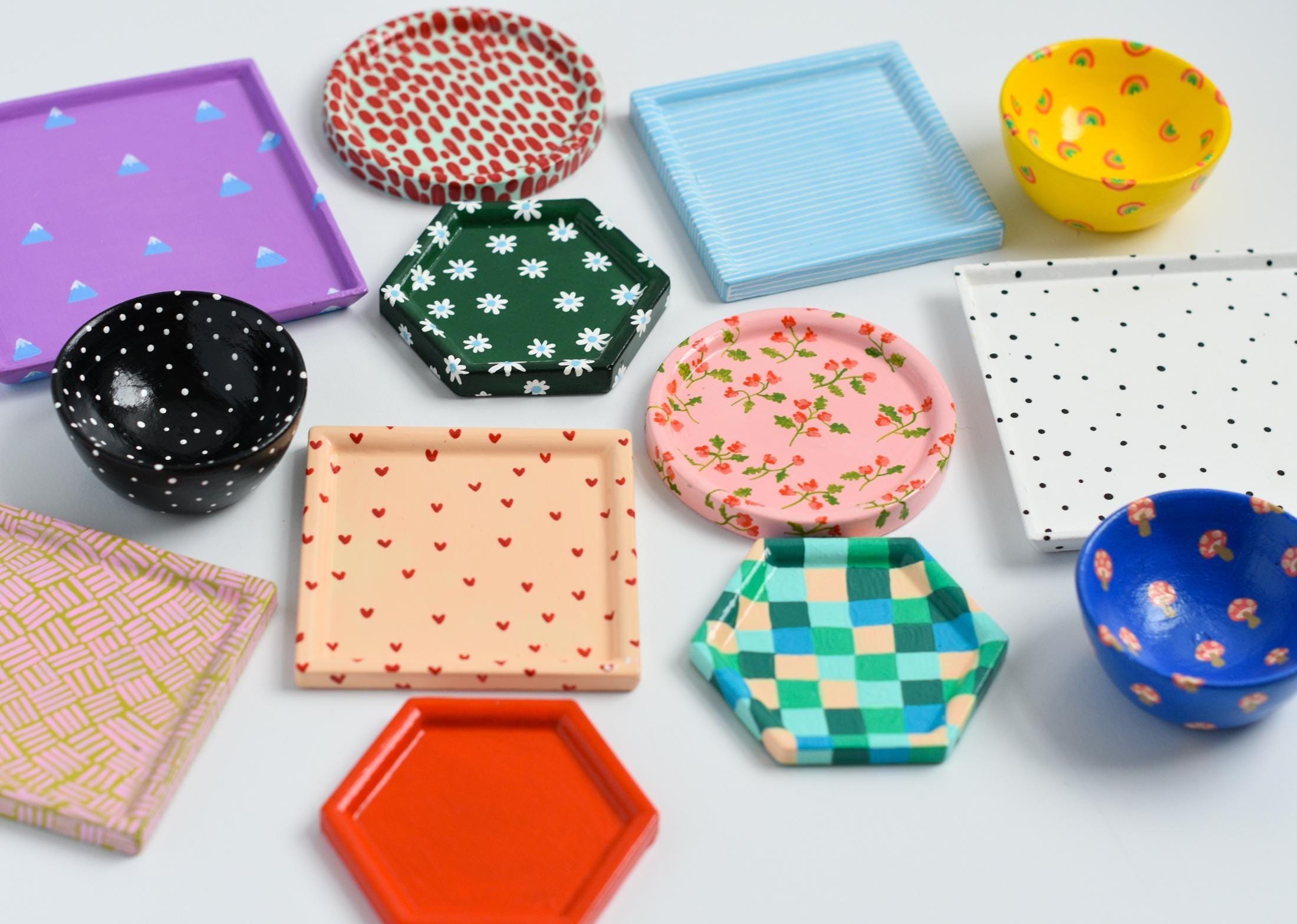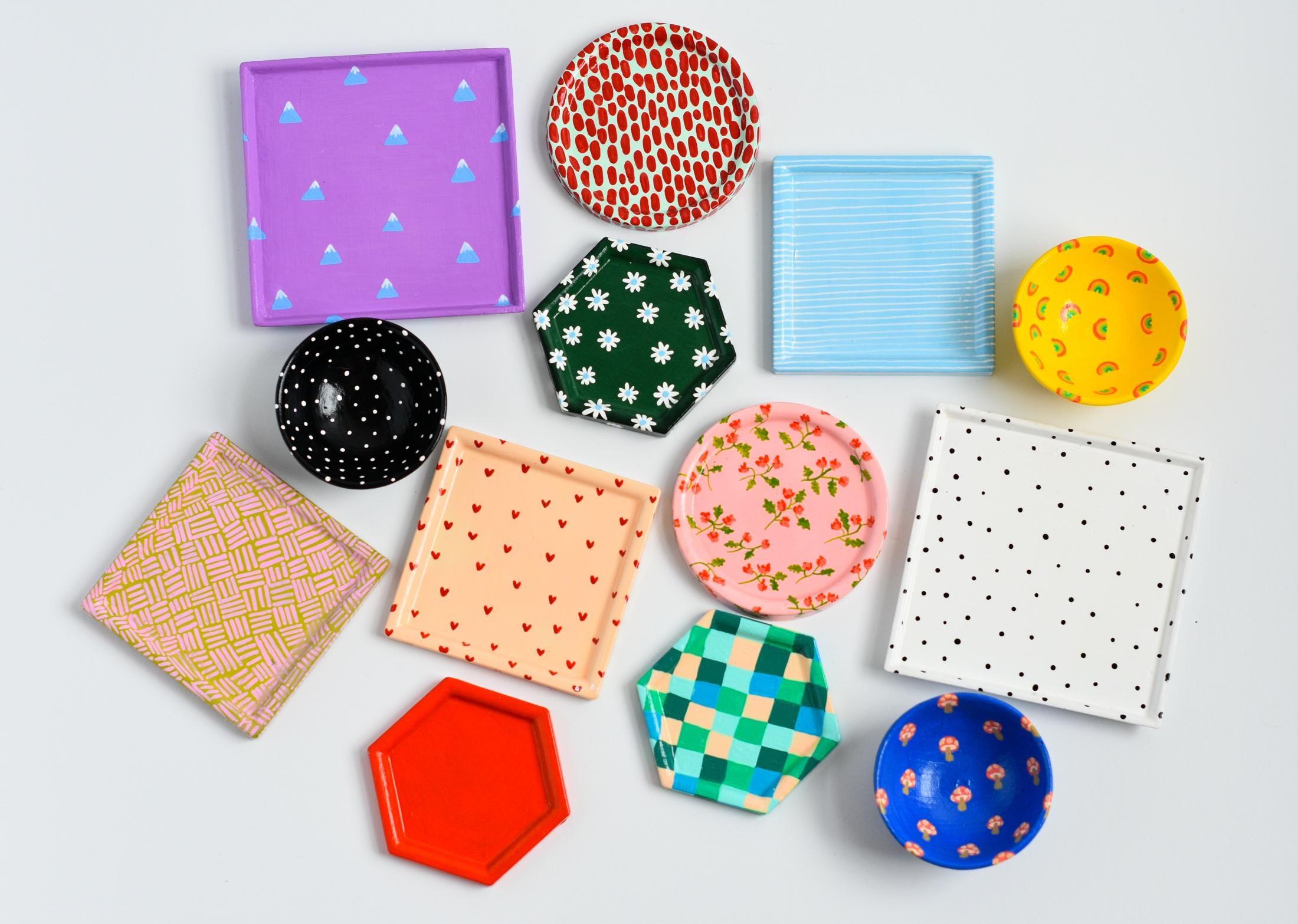 You can also choose your preferred dish shape, size, color, and background design — I currently offer 18 different designs (or a simple solid color if you prefer a minimal look).