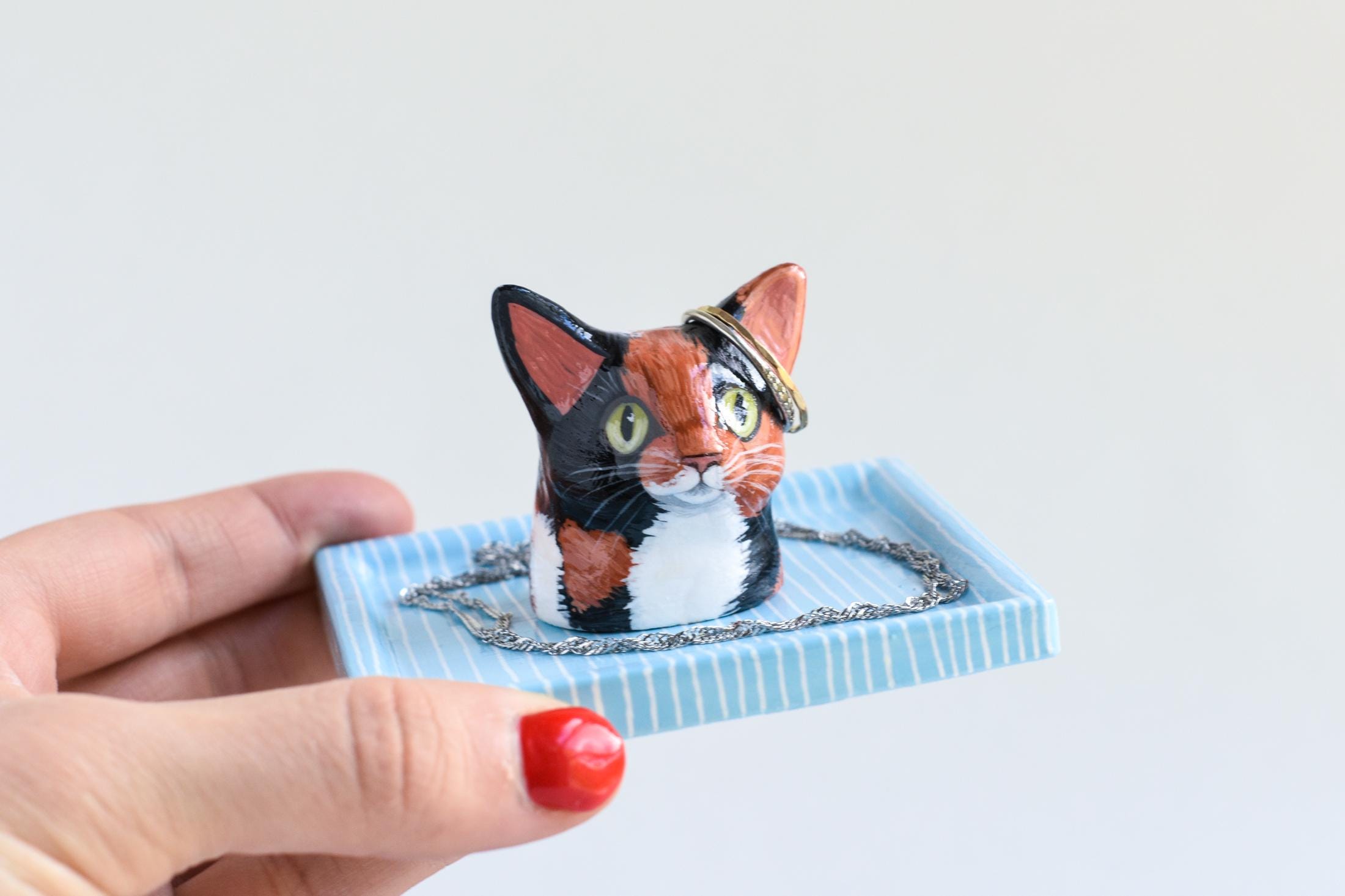 🐾 Custom Hand-Painted Cat Jewelry Dish — Personalized from Your Cat’s Photo