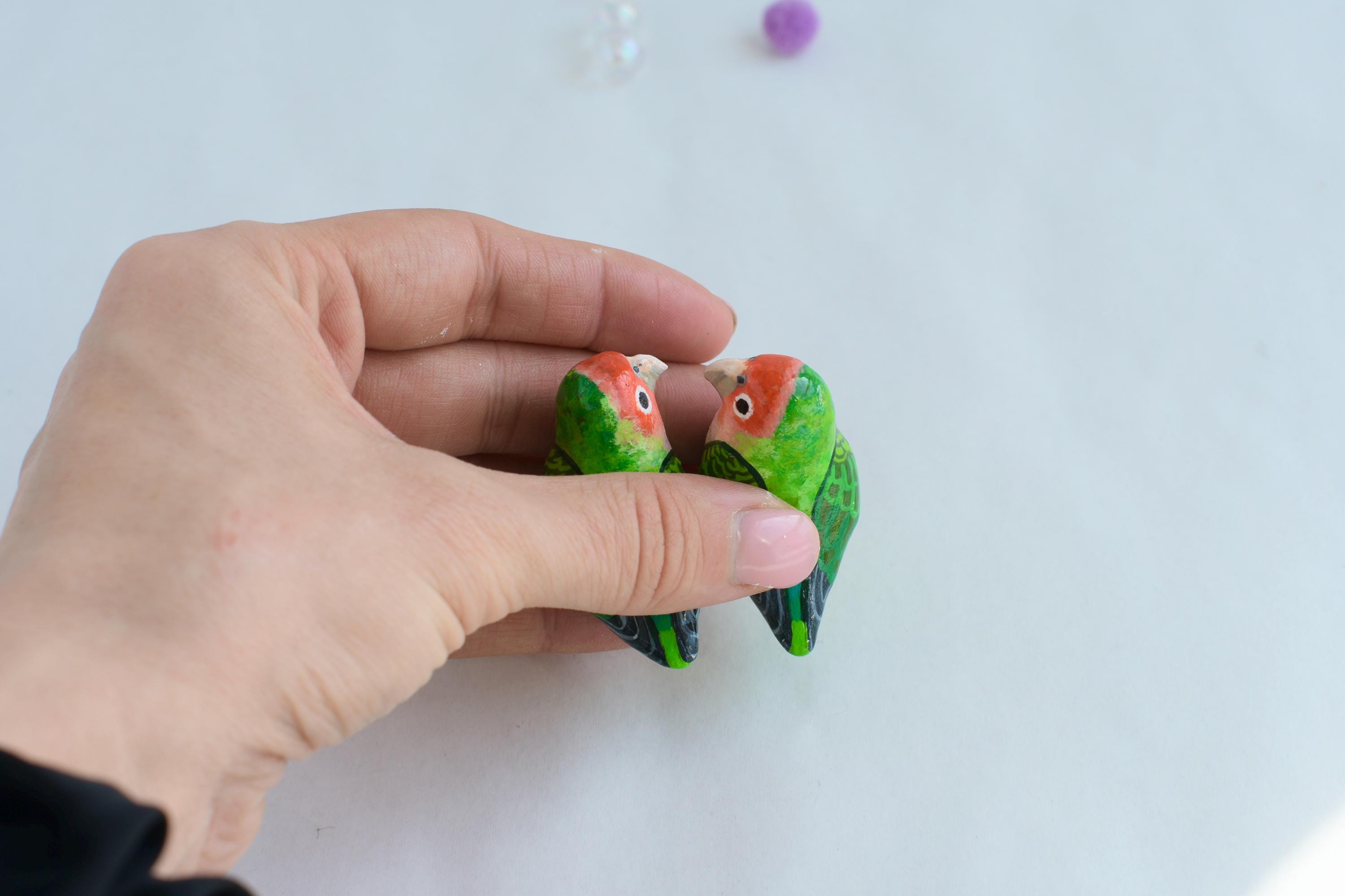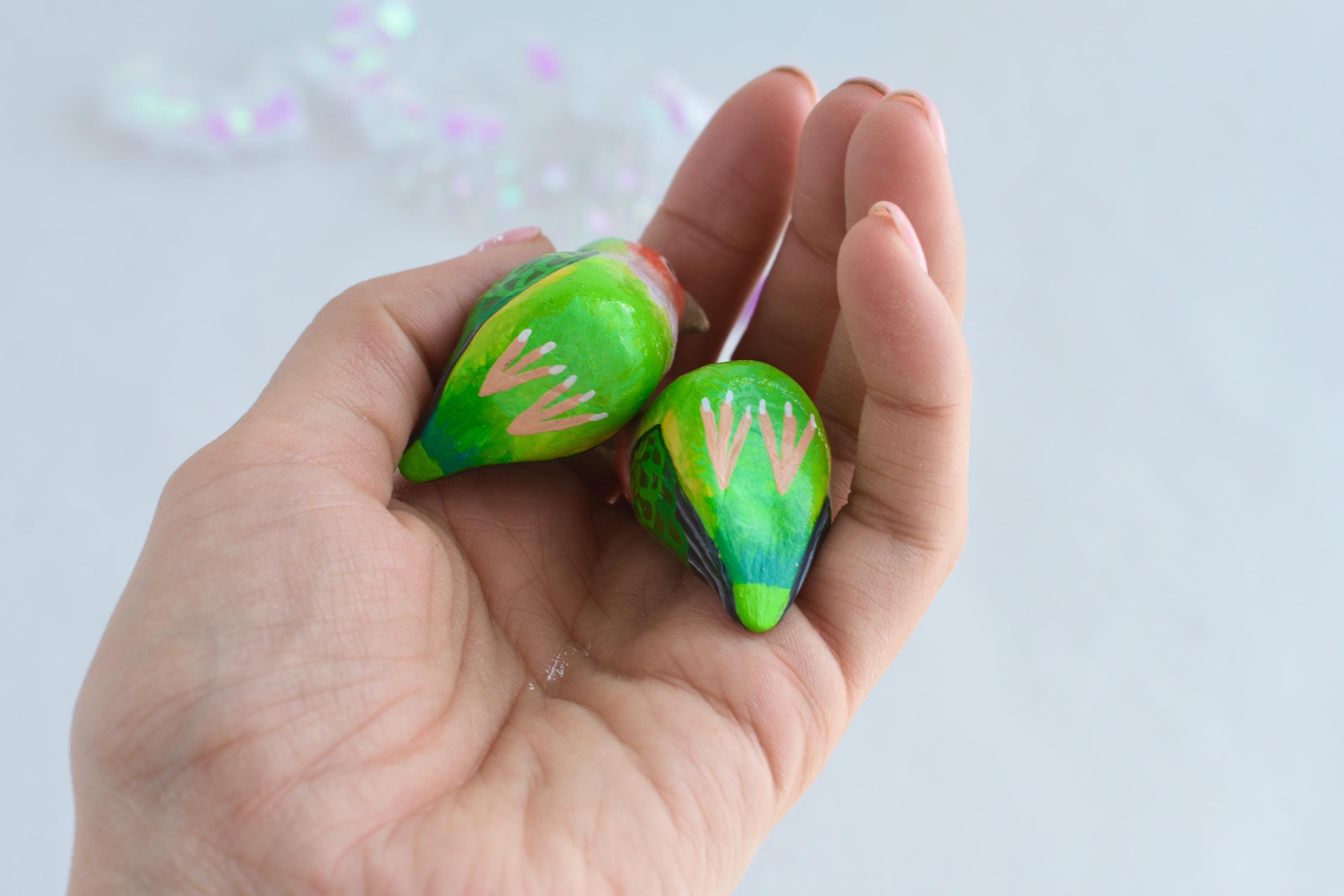 Bird Miniatures have been intricately painted with acrylic paints and topped with 2 coats of glossy sealer, with an additional layer of high gloss sealer for the beaks and eyes. They have a sheen that really brings out their colors.